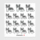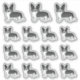 Destei's original cartoon illustration of a cute black and white colour Cardigan Welsh Corgi breed dog. The dog design is placed 15 times on the sheet. The top three ones are slightly bigger than the rest of the 12 other ones.