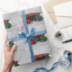 Long haired black and white kitty cat has made herself all comfortable in a Christmas bag and dares anyone to do anything about it cat lovers Christmas holiday wrapping paper