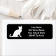 Black and white cat labels with custom address. Return address labels for cat lovers. Cute design with white silhouette of a white kitten. Personalizable text and colourful background colour.