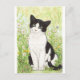 black and white cat with daisies, lovely for cards, stickers and notelets...