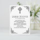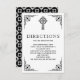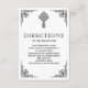 Elegant directions card featuring an elegant black ornate border and Celtic cross against a white background.