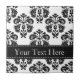 This elegant black and white damask custom ceramic tile trivet can be personalised with your name on the contrast stitch ribbon design. This customisable tile can be framed or added to a keepsake box. Designed by Chrissy H. Studios, LLC.