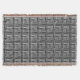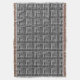 Throw blanket decorated with a black and white, ceramic effect pattern.