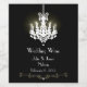 Lovely custom wedding wine labels done in black and white. An elegant white silhouette of a chandelier, against a black background, with glowing candles and a pearl enhanced border, at the bottom. White text is fully customisable for your event. Great on gift bottles of wine or sparkling wine.