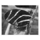 Bring delight to your personal space with this black and white charming butterfly photo. This black butterfly with striped wings and a spotted body can be seen resting on the stem of a plant. Place your order today!