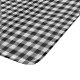 A glass cutting board with a classic black and white checked country style gingham pattern.