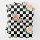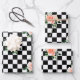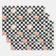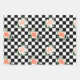 Black and White Checkered & Pink Rose Print Wrapping Paper Sheet
