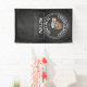 A cheers and beers 40th birthday party theme banner with white text on black chalkboard background. A happy cartoon guy is drinking beer straight from the birthday barrel with candles. The text can be customised to fit other birthday parties like 50th or 60th birthdays.
