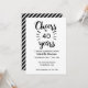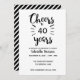 A black and white 40th birthday invitation, which you'll be able to easily personalise with your party details. This Cheers to 40 years invitation can be easily personalised to the birthday age you need.The back of this cheers to invitation is s a striped white and black. Please see photos.