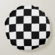 Black And White Chequered Chequerboard Pattern Round Cushion