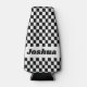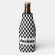 Cool, custom, unique, one-of-a-kind bottle cooler has a black and white chequered flag design.  Personalise this item by changing the name to whatever you like. This would make a great gift for the race car enthusiast in your life. Please see our other custom chequered flag items and gifts.  If you need help with customising this item please email me at ybnormalone @gmail.com.  Thanks for stopping by.  ©Karen Hall