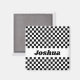 Cool custom magnet has a black and white chequered flag design on the front. Personalise it by changing the name to whatever you like. This would make a great gift for the race car enthusiast in your life. Please see our other custom chequered flag items.