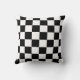 On the front of the black and white chequered pattern pillow, there is a white circle with a custom monogram in the centre. Add your initial in the sidebar. Alternating black and white squares form the bold geometric pattern behind it.