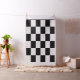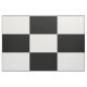 Stylish geometric fabric features a bold chequered pattern of black and white rectangles.