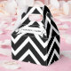 Favour box with chevron pattern in black and white. Neutral colours. Edit name to customise.