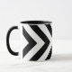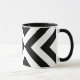 Alternating black and white chevrons converge in this bold geometric pattern created from scratch.