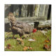 Black and white Chicken by fence Tile