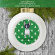 Black and White Chihuahua White Christmas Trees customisable dated ornament design features a cute little dog in front a pattern of white holiday tree silhouettes. Personalise by putting in your name or the name of the recipient. There is also a space for the year.