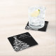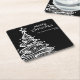 Black and White Christmas Tree for a Christmas Party barware coaster with a cute whimsical fun party paper coaster for a festive Holiday party.