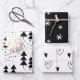 Black and White Christmas Trees Snowflakes Hearts Wrapping Paper Sheet