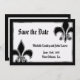 Make sure your friends and family can be there on your important day with these stylish Black and Chrome Fleur de Lis Save the Date Cards. Visit www.zazzle.com/enchantedbayou* for New Orleans and Cajun themed cards, invitations and gifts. The invitation is fully customisable.