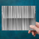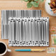 Black and White Circle Triangle Stripe Pattern envelope. Simple black vertical stripes with small circles and triangles on a white background.