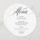 This elegant, black and white wedding round menu card features classic, old-world style with romantic calligraphy. Add your dinner choices for starters or appetizers, first course, main course or entrée, and desserts. Set the tone for your luxe, sophisticated Italy inspired wedding reception or rehearsal dinner, or bridal shower food offerings, with this classy, minimalist design.