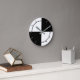 Modern black and white circle no numbers Round Clock. It showcases colour blocks of black and white and lines that indicate the hours.
