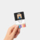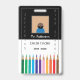A black and white teacher photo ID badge with the doodle of colour pencils at the bottom . Personalise it with the teacher's name , subject taught , year the ID is valid for , school name and address . There is even a spot on the back for the card holder's signature . Ideal for public or private schools staff . Comes in several colours.