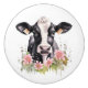 Black and White Cow In Flowers Ceramic Knob