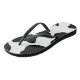 A flip flop with black and white cow print is a type of footwear that has a unique design. The base of the flip flop is made of rubber or other flexible material, and it is designed to be worn on the feet. The upper part of the flip flop has a cow print design, with black and white spots that mimic the pattern of a cow's hide. The flip flop is open-toed, allowing the wearer to show off their pedicure, and it typically has a thong-style strap that goes between the big toe and the second toe. This strap keeps the flip flop securely on the foot while allowing the toes to move freely. Black and white cow print flip flops are a playful and quirky choice for those who want to add some fun and personality to their casual summer footwear collection. They can be paired with a variety of outfits, such as shorts and a t-shirt for a casual look, or a sundress for a playful and eclectic style.