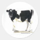 round sticker iwith image of my beautiful watercolor of a black and white cow