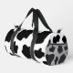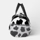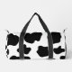 Black and white cow spots pattern duffle bag. Funny farm animal print design. Cute Birthday gift idea for cow lovers, cowboys and cowgirls. Personalise this print with your name, monogram or quote. Blotchy black and white cow hide skin image design. Handy for sports, gym , fitness, travel and more.