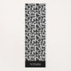Beautiful personalized farm yoga mat with a pattern of black cow spots over a white background. Illustrated and designed by Patricia Alvarez.