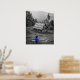 Black and White creative Photography of an old farm house with a blue Splash Of Colour woman in front. Print as Posters, canvas, triphych, metal art and Digital download available too. click on transfer design to move to any product you want.