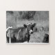 Curious holstein dairy cows look across the fence from their pasture wondering what the photographer is up to in this b&w farm themed jigsaw puzzle. Fun for the whole family on a lazy weekend afternoon. Enjoy putting together this family fun time puzzle that shows a farm themed photo of dairy cows in their natural habitat.