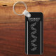 Here is a great way to celebrate your graduate. Custom black and white keychains features the text, "Congrats! Class of 2025." It has a classic black background with an inspirational Adventure Awaits pattern. Use the template to personalise.