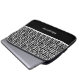 The sleeve is made of nice feeling material and seems very durable. I'm not sure how easy it'll be to clean, but the construction seems sound and the fabric is quick thick. I also like the double zipper. The printing is lovely and appears durable. The white on black contrast is nice, and the design very elegant.