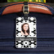 Black and white daisy pattern luggage tag