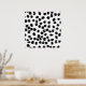 Black and white animal print pattern. Black spots on a background of white. This fun and trendy animal pattern looks like a dalmatian dog pattern or a cheetah pattern depicted in black and white.
