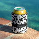 A spotted black and white pattern of dalmatian dog fur. A black banner with white stitches and text runs across. The text can be customised.