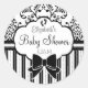 Black and White Damask and Stripes Baby Shower Classic Round Sticker