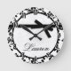 Black and White Damask Black Ribbon Bow Clock