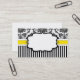 Elegantly presented business card having a black and white damask background with a yellow band. A label in the centre is available for text.
