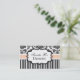 Elegantly presented business card having a black and white damask background with a peach band. A label in the centre is available for text.
