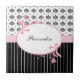 A trendy tile with a chic black and white damask pattern on the top and sassy pinstripes on the bottom, divided by a girly pink floral frame. Personalise by adding your name. Perfect present for the stylish and fashionable woman who likes stripes and a damask damask pattern.