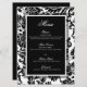 Elegant black & white damask custom menu is perfect for, wedding, anniversary , bridal shower, engagement etc. Celebrate in style luxuriously with this entire elegant collection, it will add a stunning touch to your home. Parts of this collection can be modified to fit your event, it’s customisable. Enjoy, cheers!