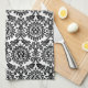 Black and White Damask Hare Pattern Tea Towel