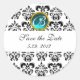 BLACK AND WHITE DAMASK MONOGRAM blue sapphire Classic Round Sticker