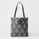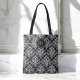 A chic tote bag with function and style, this design features a lovely white damask pattern over a black background. Personalise with your desired monogram by replacing the sample initials shown in the easy-to-use text template. It makes a wonderful gift for any lady on your gift list or a special treat for yourself. There are so many practical uses for this tote, from shopping, trips to school, visits to the library, or carrying items to the office, you can find hundreds of uses for this handy tote bag.